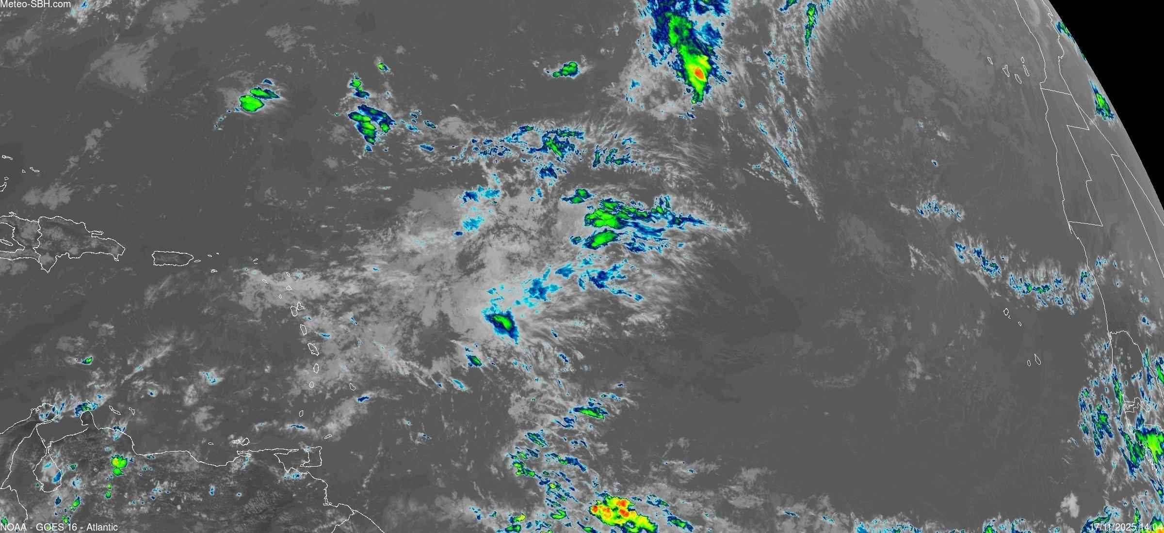 Imagerie Satellite dans l'infrarouge des Antilles - Cliquez ici pour l'animation