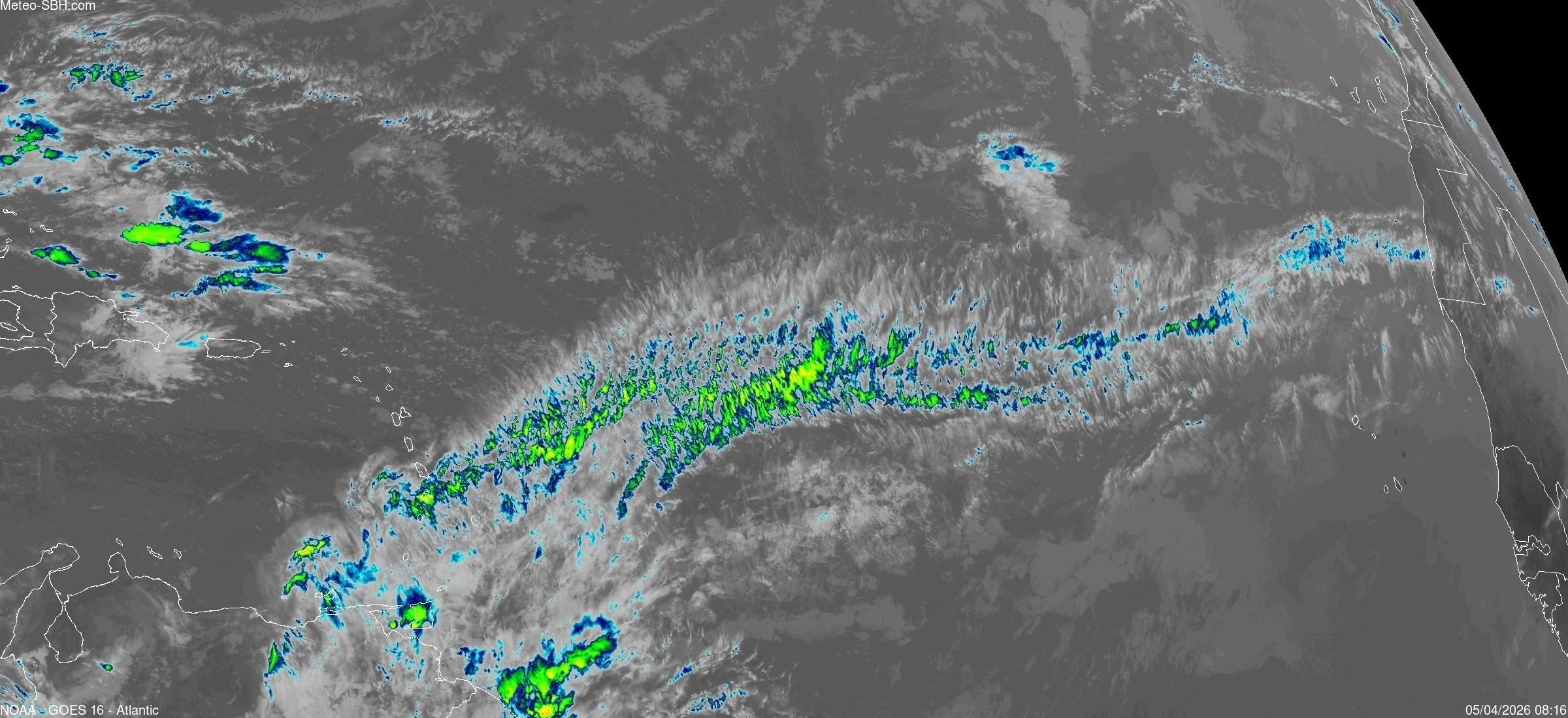 Imagerie Satellite dans l'infrarouge des Antilles - Cliquez ici pour l'animation