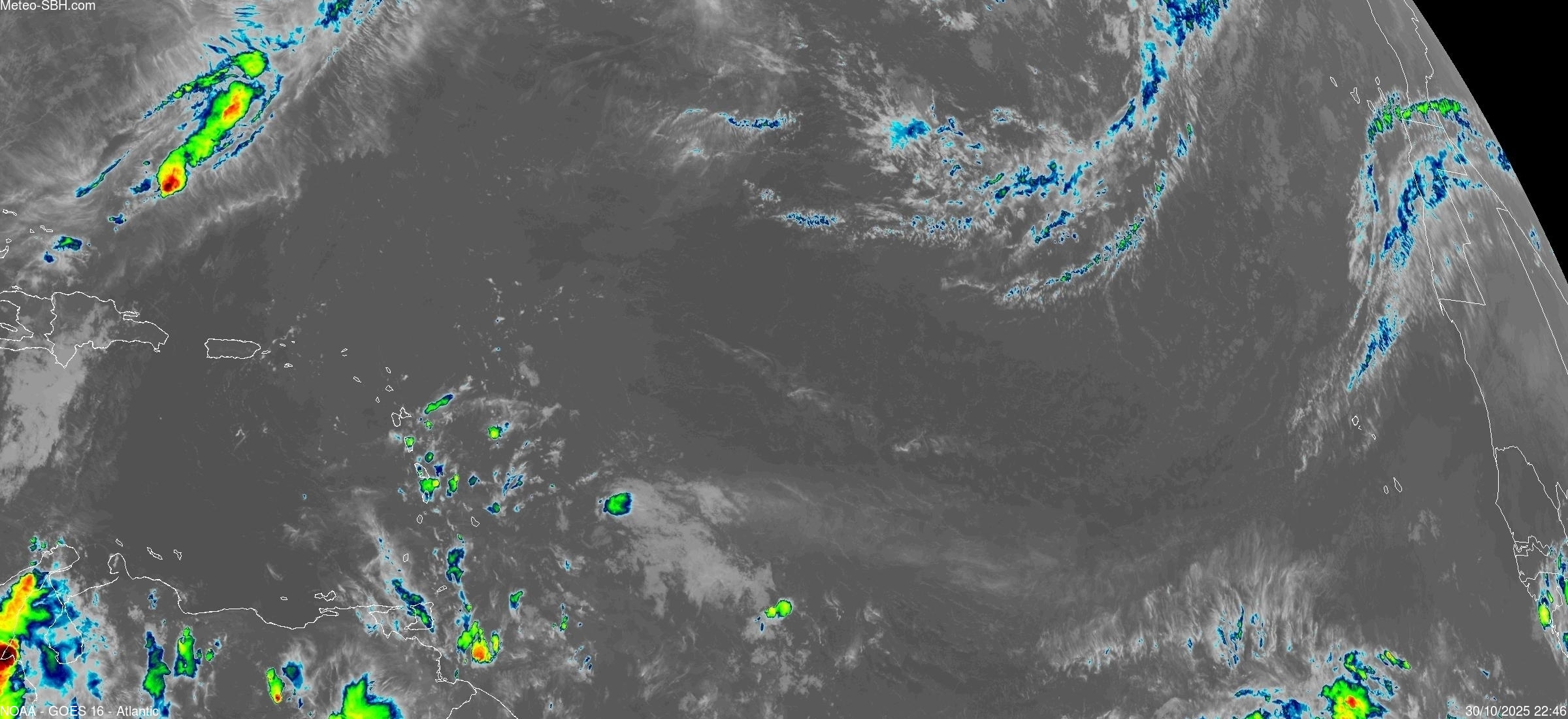 Imagerie Satellite dans l'infrarouge des Antilles - Cliquez ici pour l'animation