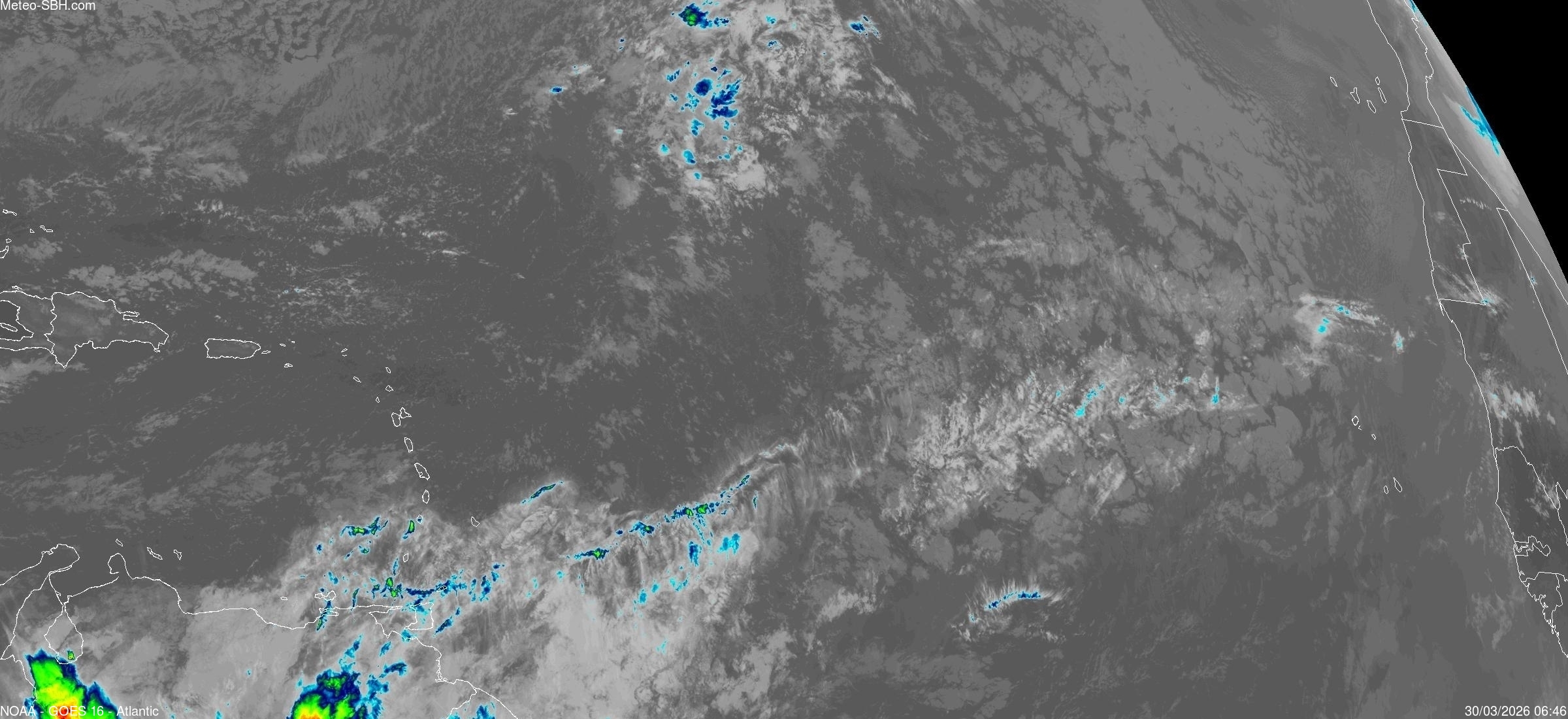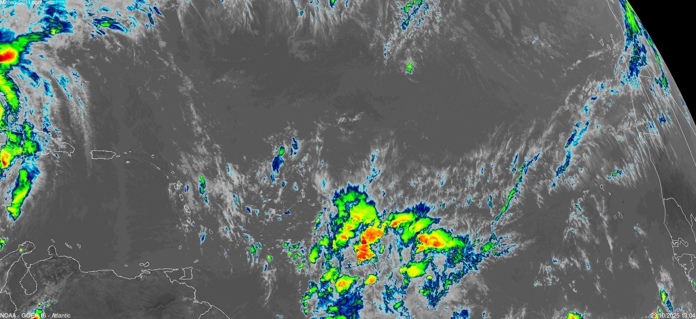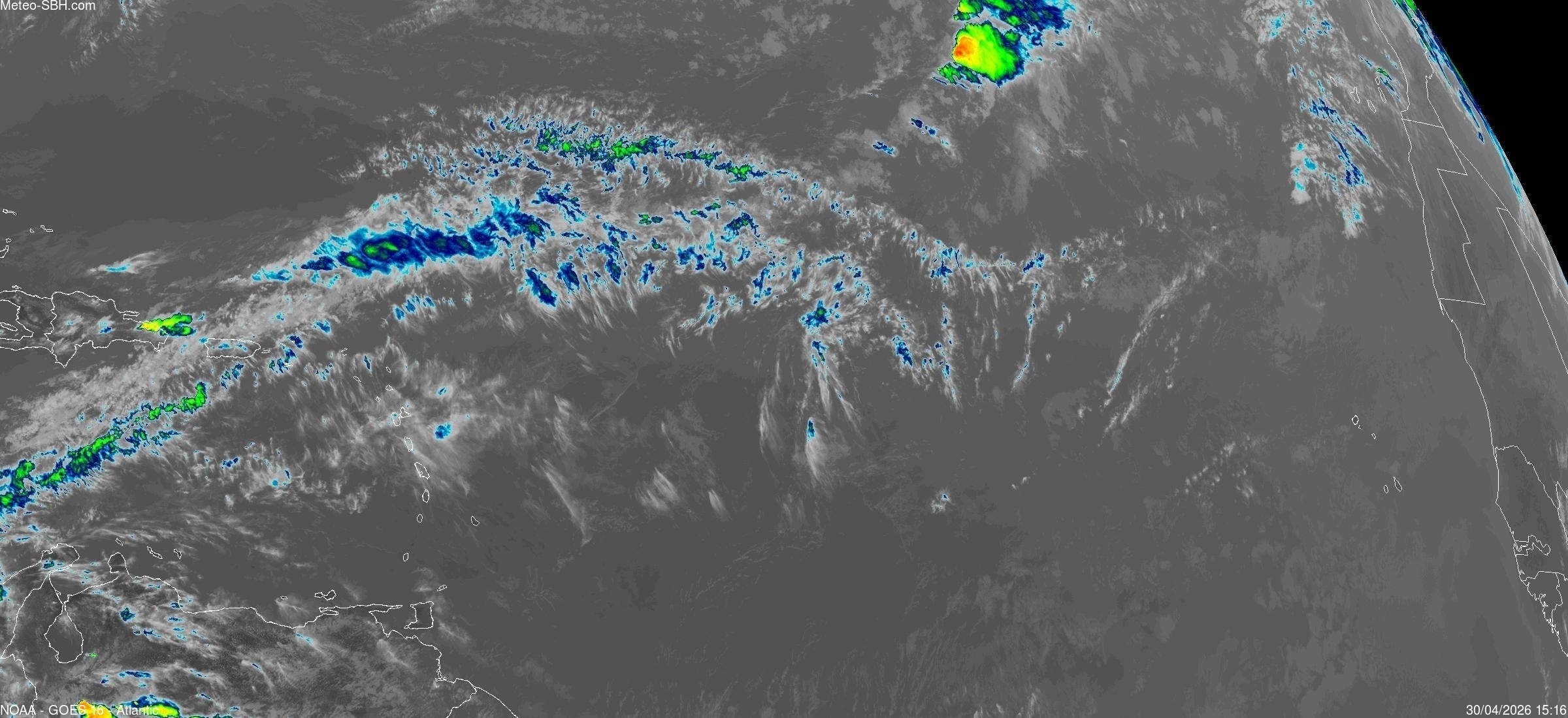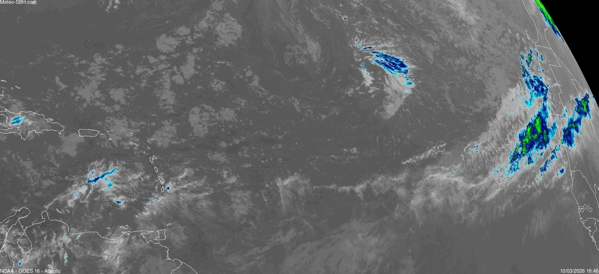Imagerie Satellite dans l'infrarouge des Antilles - Cliquez ici pour l'animation