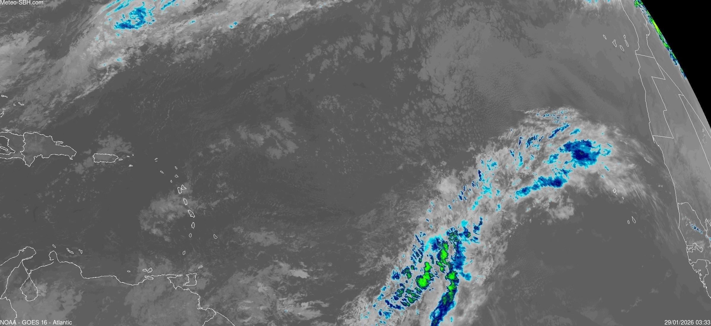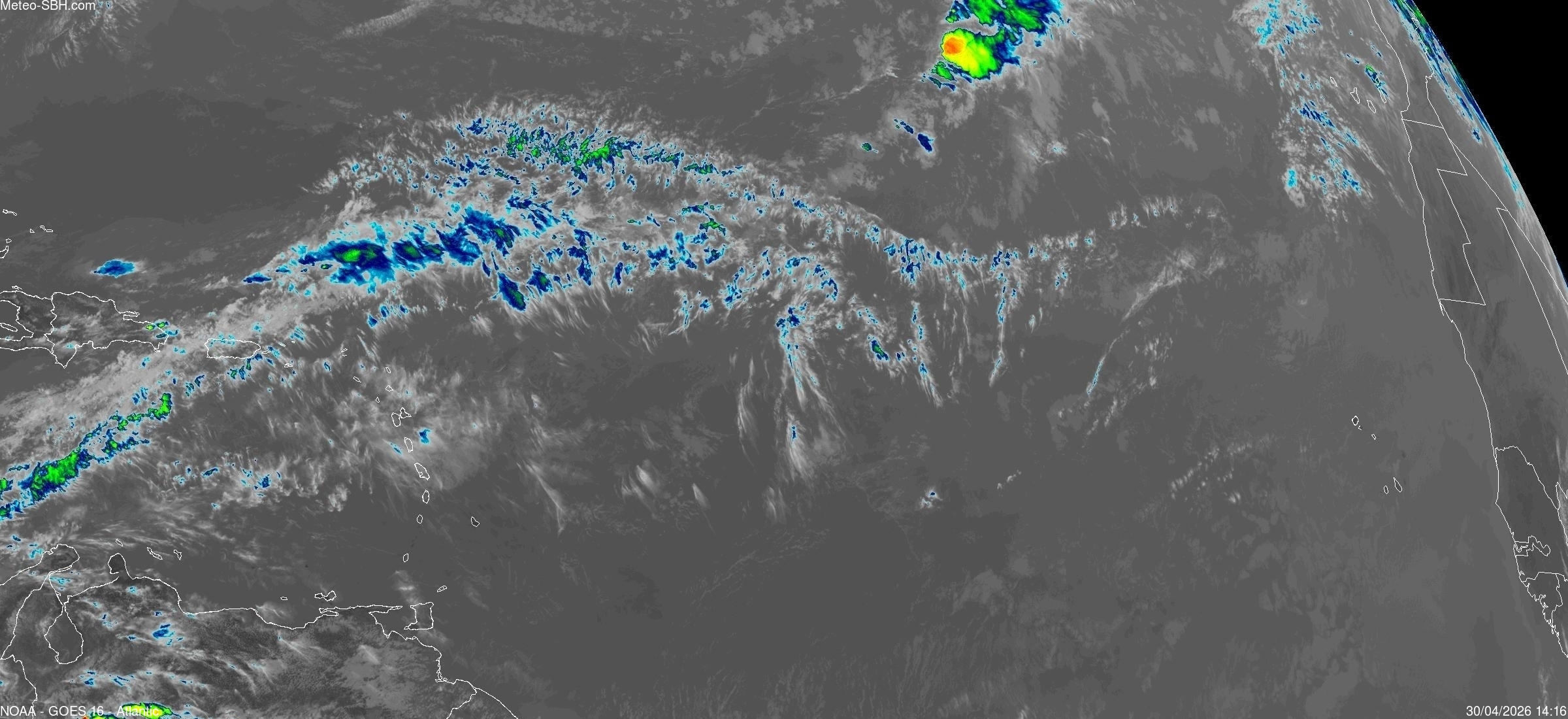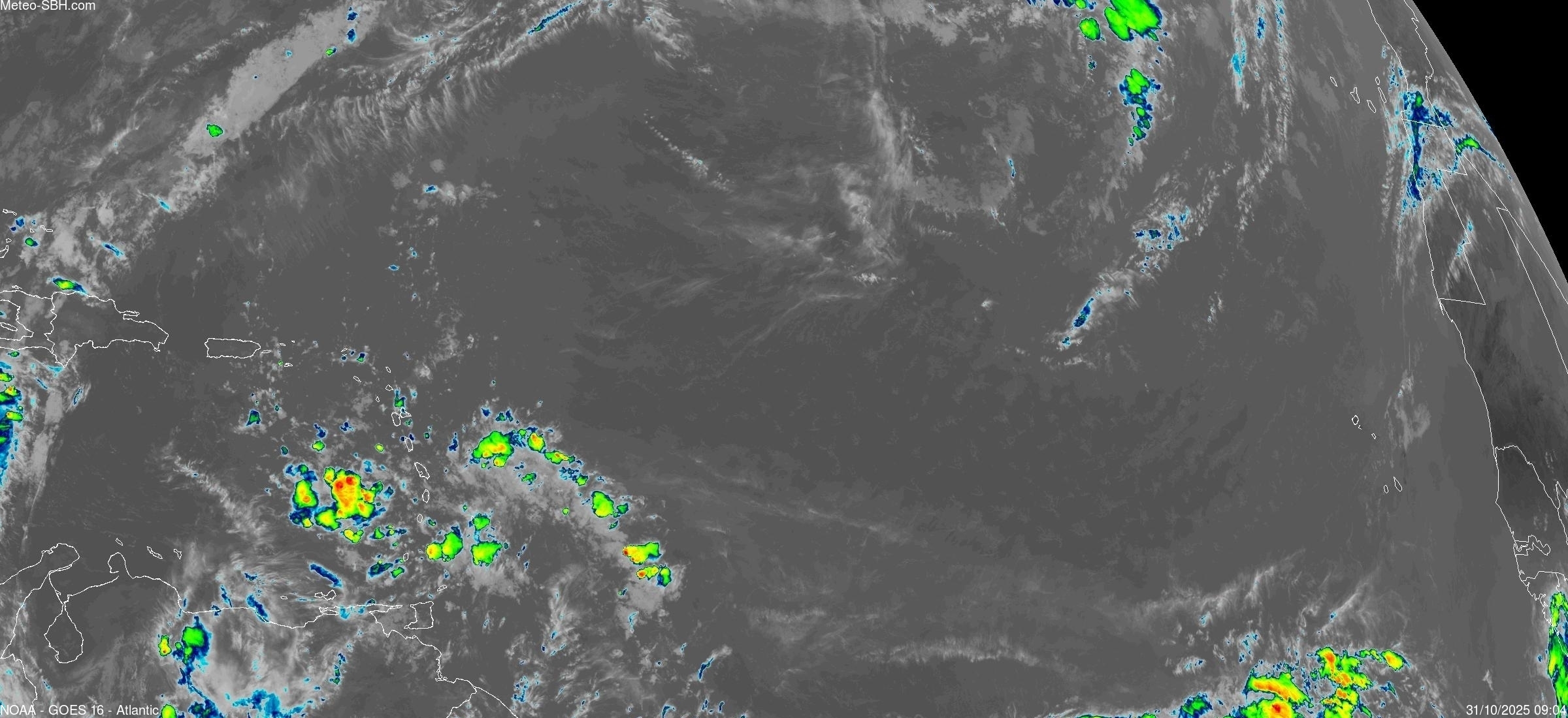 Imagerie Satellite dans l'infrarouge des Antilles - Cliquez ici pour l'animation