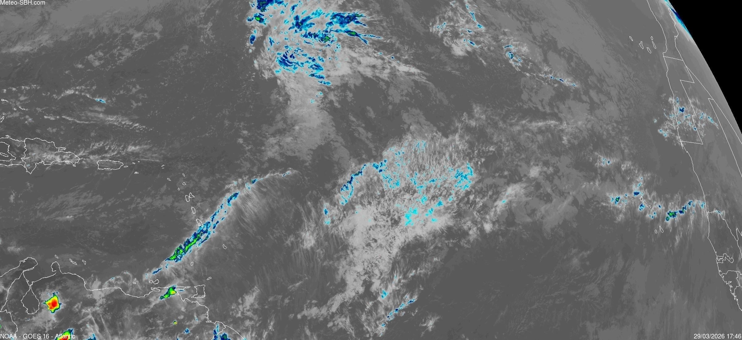Imagerie Satellite dans l'infrarouge des Antilles - Cliquez ici pour l'animation